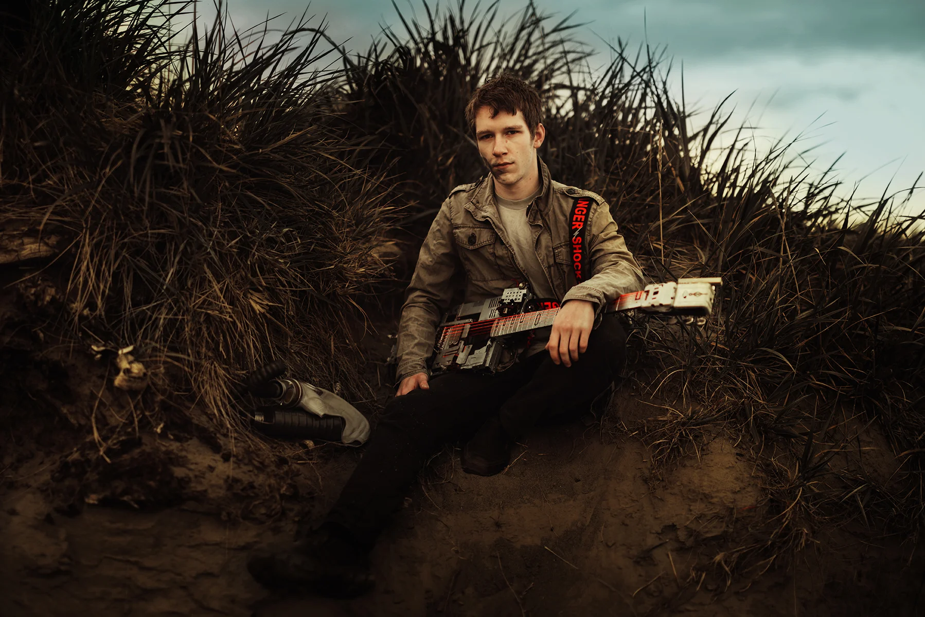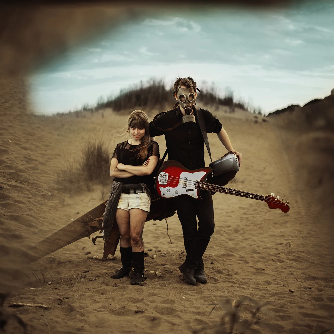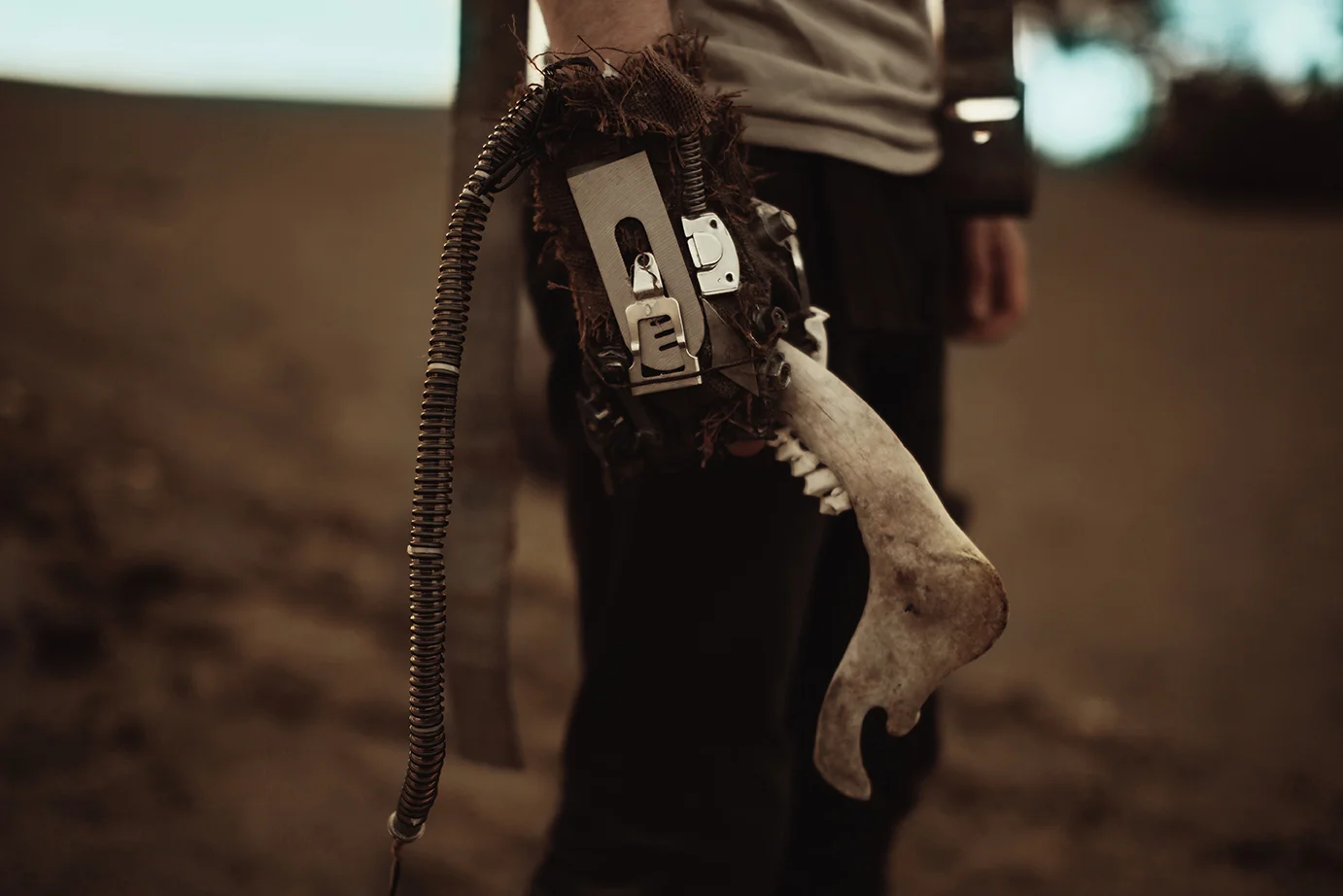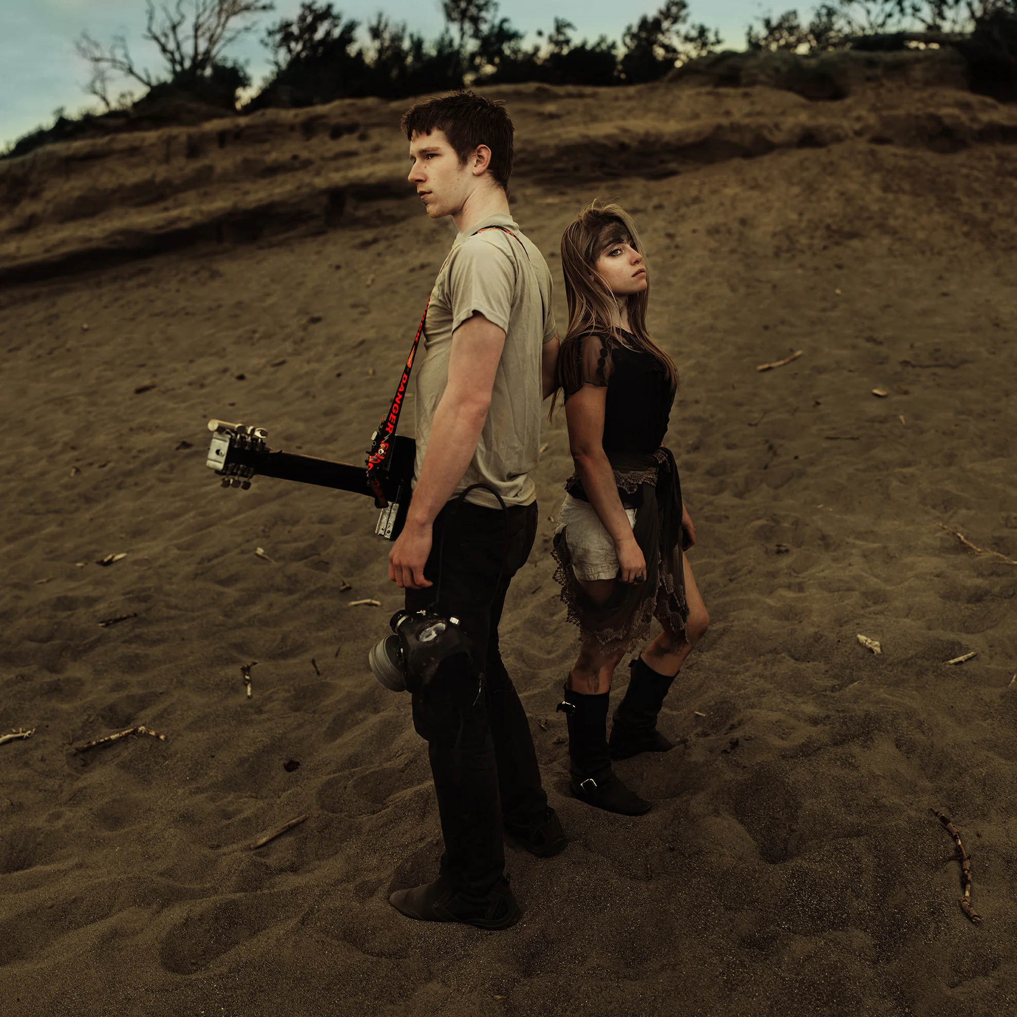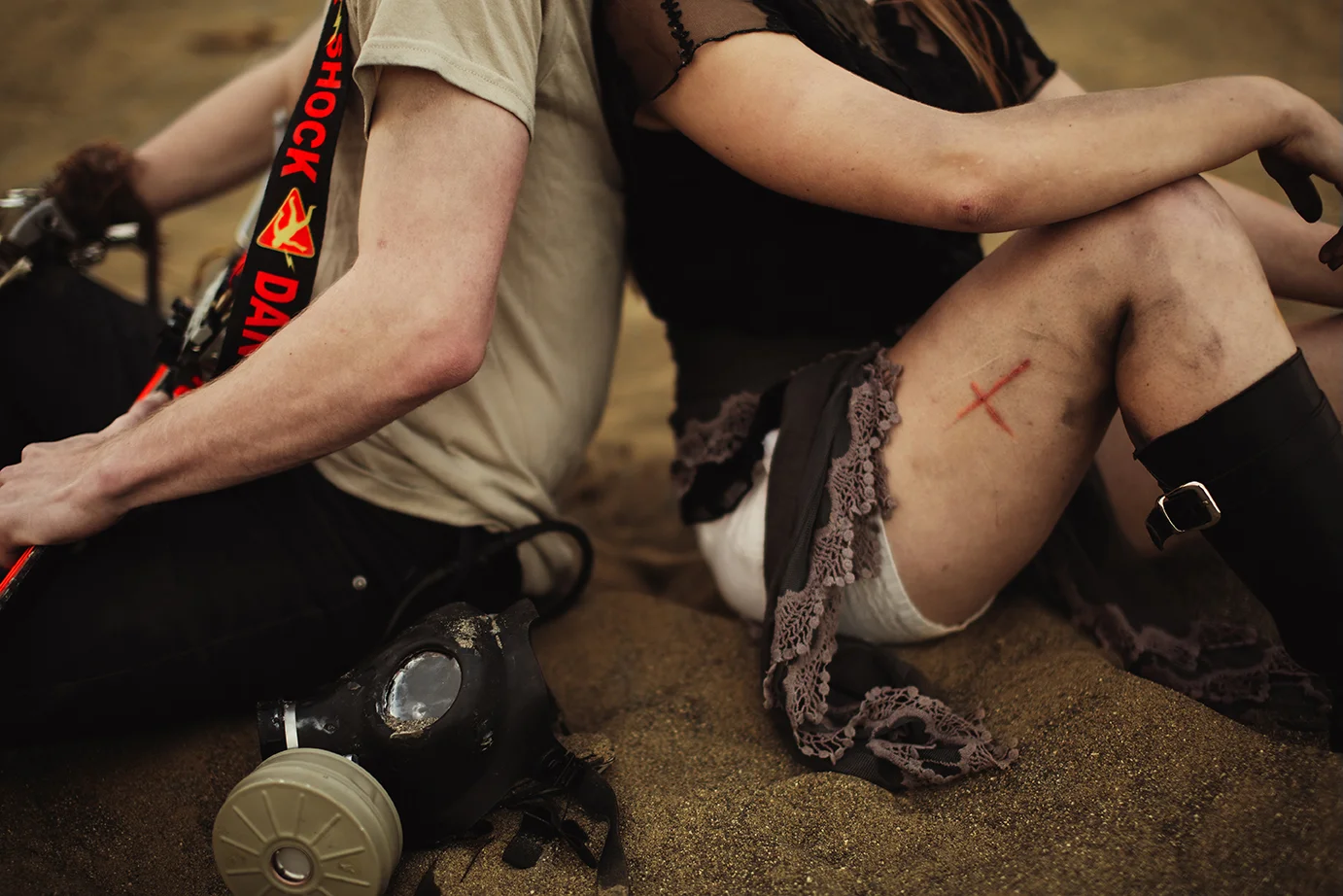 First of all, this shoot almost never existed. I had photographed Cody last year around this same time and we were wanting to do it again with his other guitars. Everything was good to go, but then at the last minute (aka like two hours before our scheduled time) we were unable to go to the location for which we had planned. So I thought, eh, why not just go to the dunes? Sand is pretty cool, right? Then all of a sudden I got that insane burst of inspiration that almost physically hits you right in the face. You know what I'm talking about. There in neon letters: Do A Freaking Mad Max Shoot. And just like that everything fell together. We got the props (Cody had previously made both the guitar and the glove), the wardrobe, the makeup (found on site thanks to an old campfire, haha), and Cody's friend Sydney even kindly agreed to model. I was freaking out the whole time over how awesome it looked, especially because it all came together in under an hour.