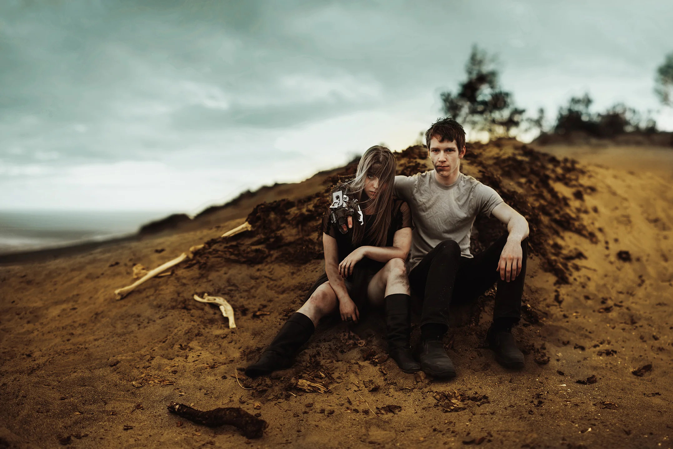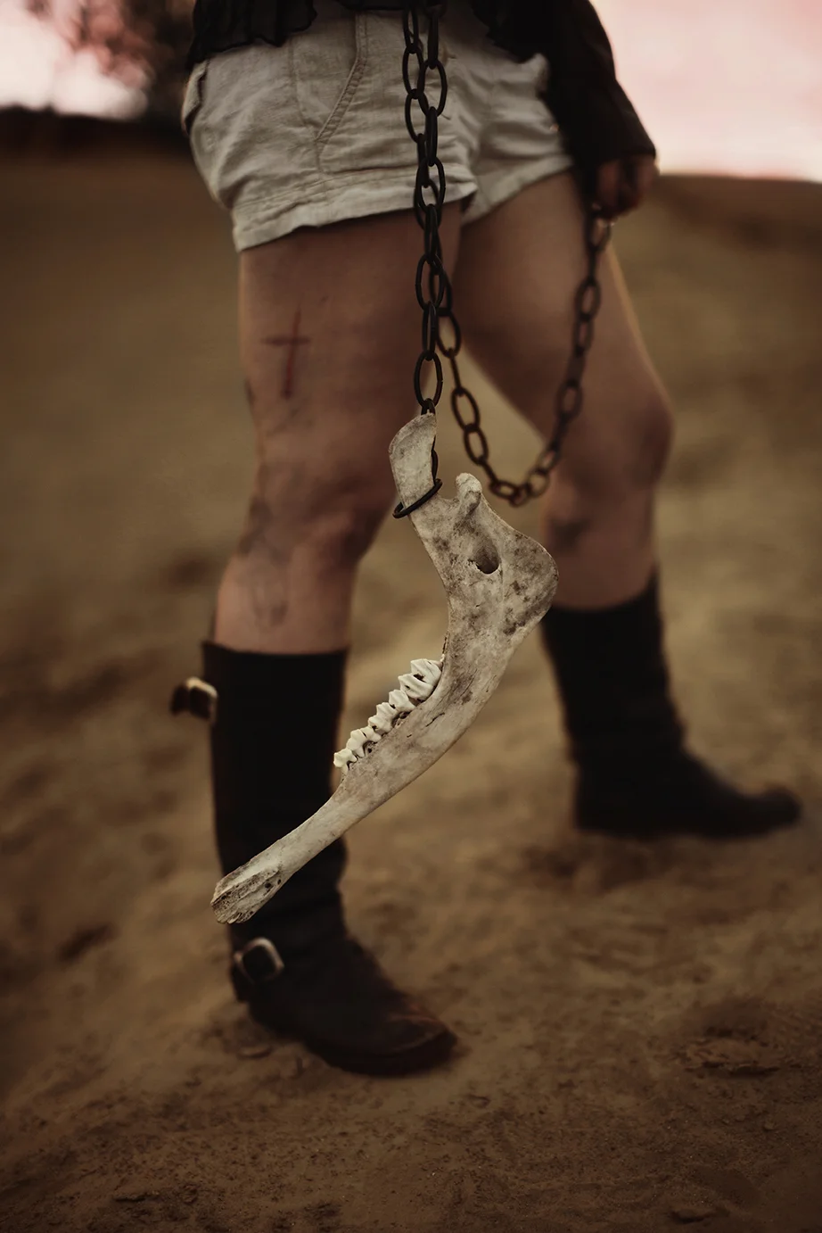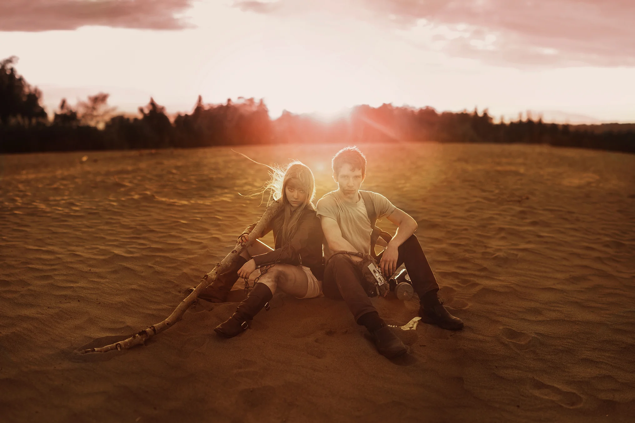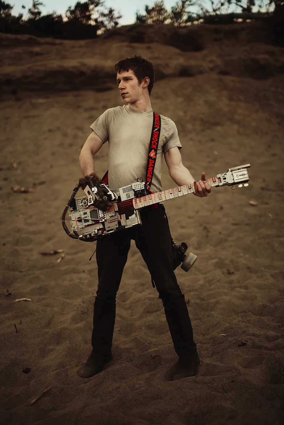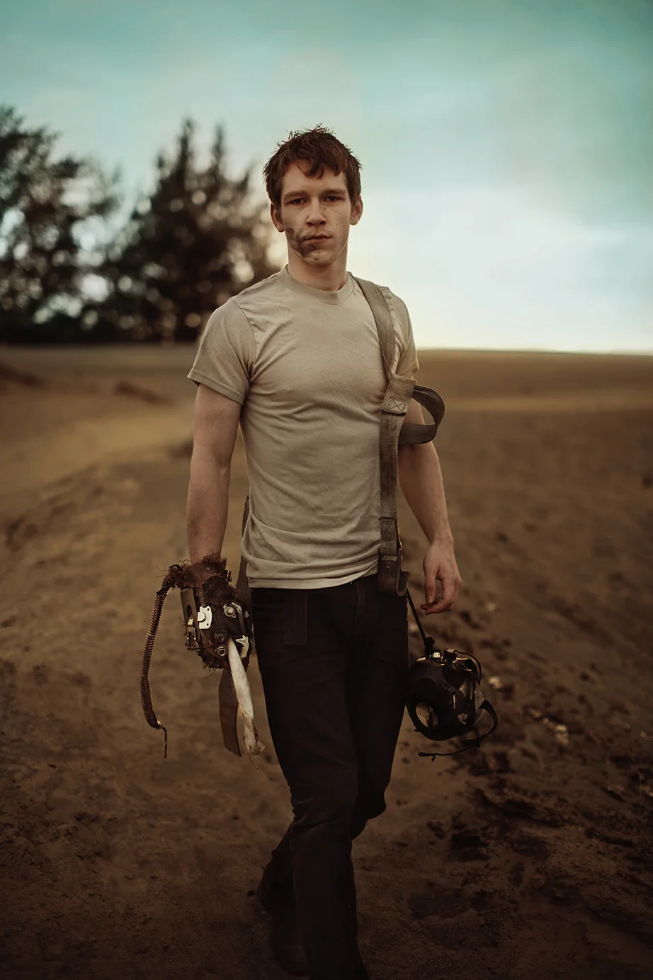 First of all, this shoot almost never existed. I had photographed Cody last year around this same time and we were wanting to do it again with his other guitars. Everything was good to go, but then at the last minute (aka like two hours before our scheduled time) we were unable to go to the location for which we had planned. So I thought, eh, why not just go to the dunes? Sand is pretty cool, right? Then all of a sudden I got that insane burst of inspiration that almost physically hits you right in the face. You know what I'm talking about. There in neon letters: Do A Freaking Mad Max Shoot. And just like that everything fell together. We got the props (Cody had previously made both the guitar and the glove), the wardrobe, the makeup (found on site thanks to an old campfire, haha), and Cody's friend Sydney even kindly agreed to model. I was freaking out the whole time over how awesome it looked, especially because it all came together in under an hour.