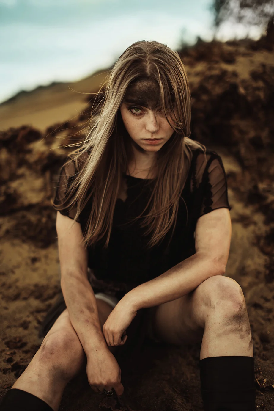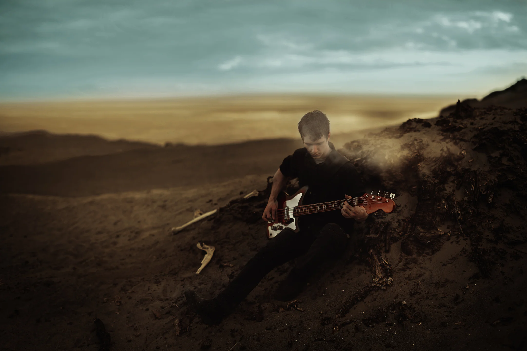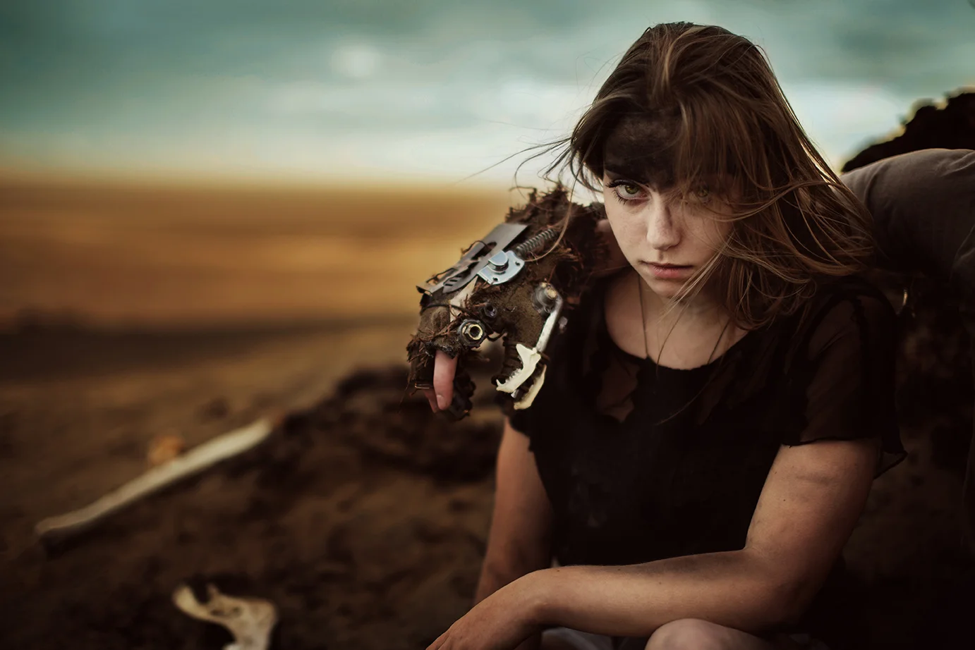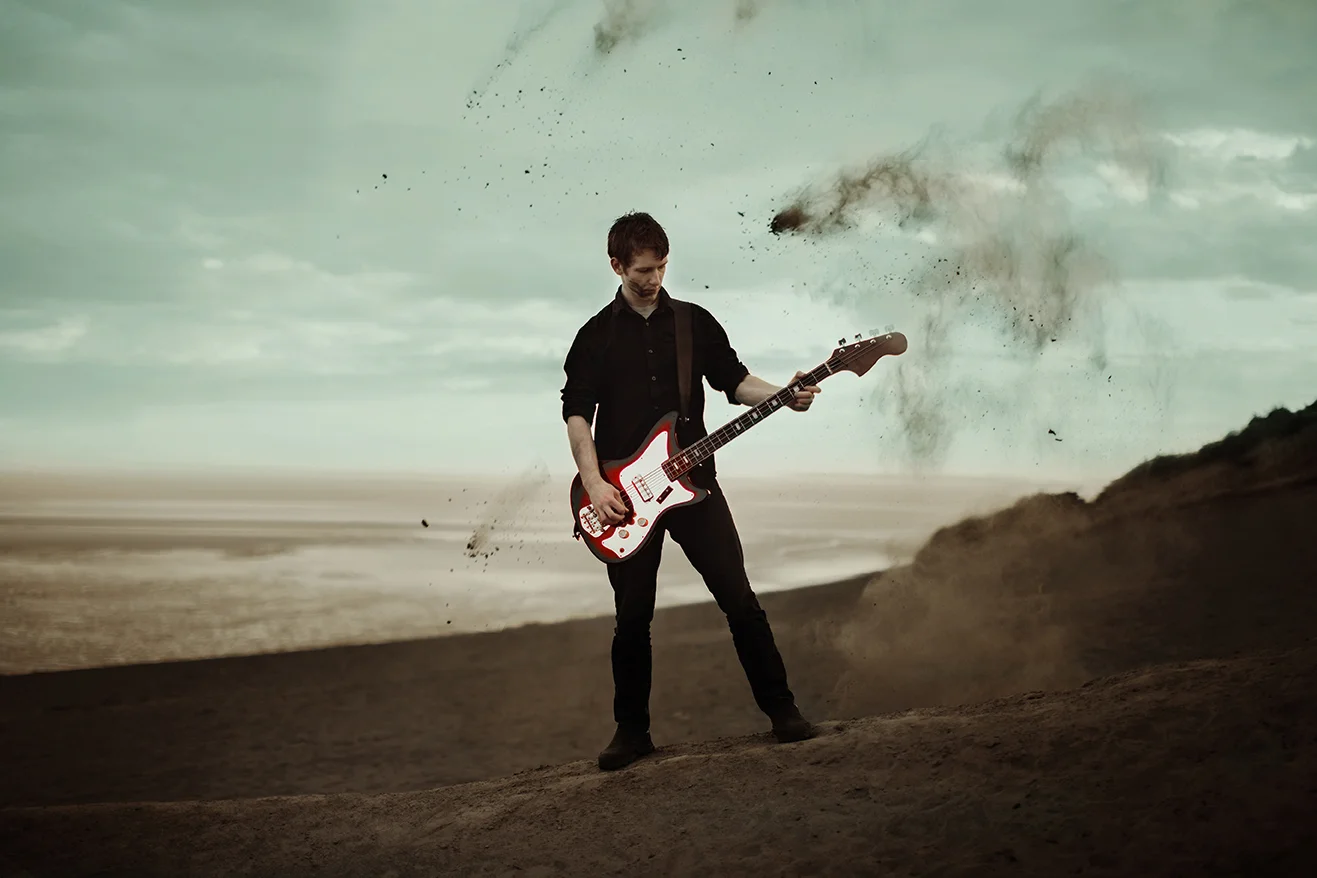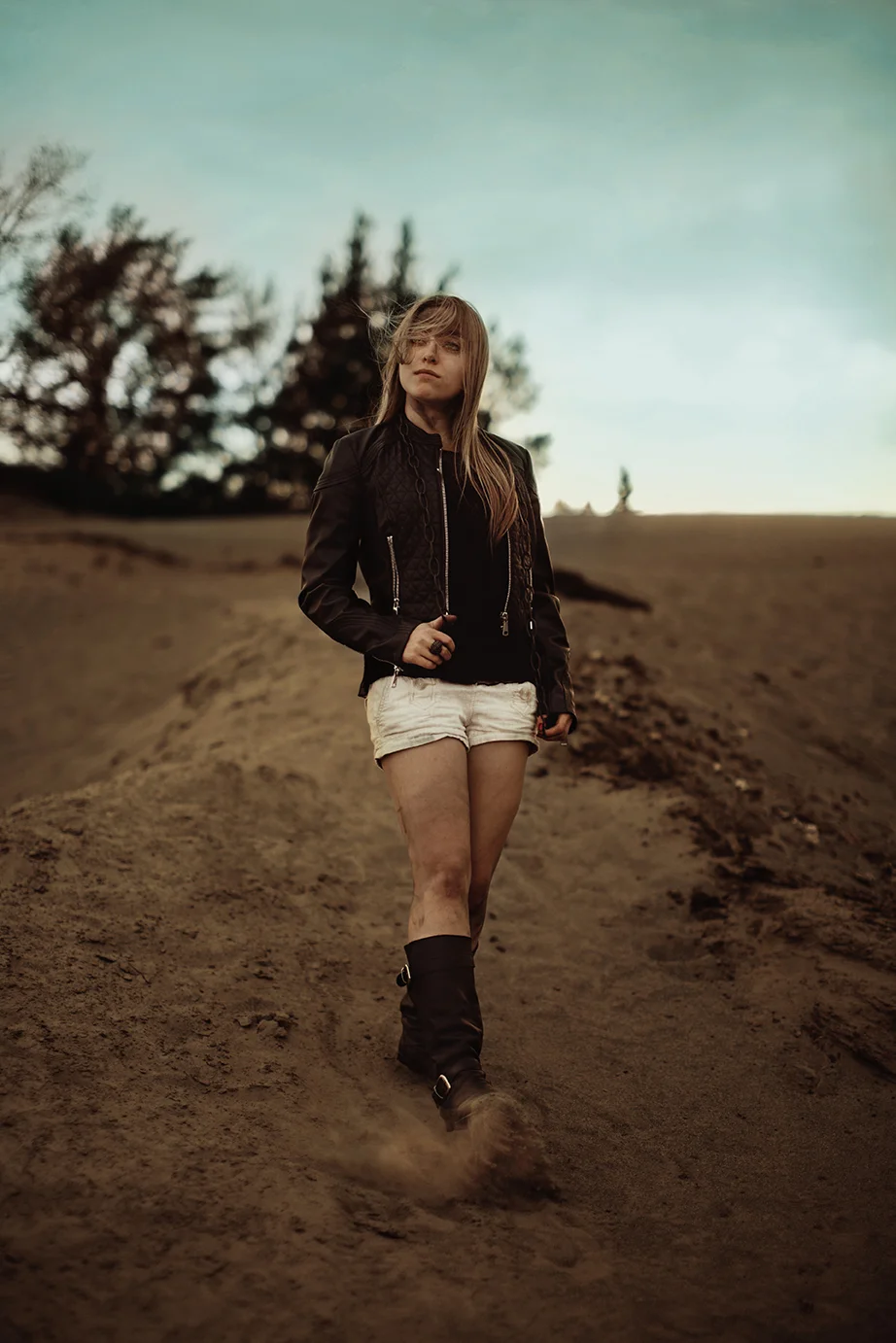 First of all, this shoot almost never existed. I had photographed Cody last year around this same time and we were wanting to do it again with his other guitars. Everything was good to go, but then at the last minute (aka like two hours before our scheduled time) we were unable to go to the location for which we had planned. So I thought, eh, why not just go to the dunes? Sand is pretty cool, right? Then all of a sudden I got that insane burst of inspiration that almost physically hits you right in the face. You know what I'm talking about. There in neon letters: Do A Freaking Mad Max Shoot. And just like that everything fell together. We got the props (Cody had previously made both the guitar and the glove), the wardrobe, the makeup (found on site thanks to an old campfire, haha), and Cody's friend Sydney even kindly agreed to model. I was freaking out the whole time over how awesome it looked, especially because it all came together in under an hour.